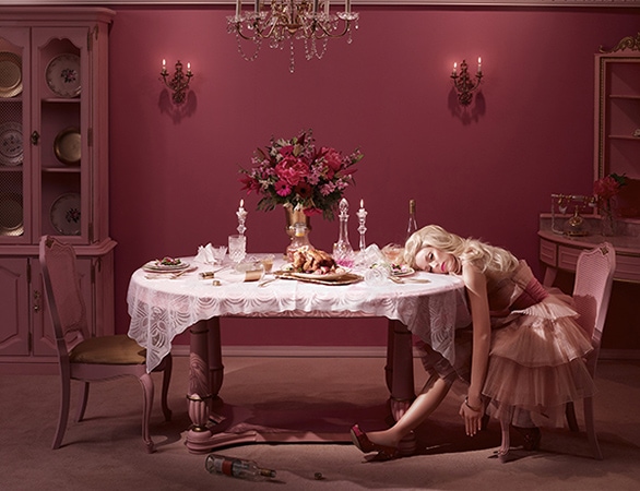 J’ai toujours trouvé que mon expérience de photographe documentaire complète ma photographie conceptuelle – elles s’informent mutuellement, autant sur le plan technique que sur le plan créatif. De ce travail plus franc, j’ai appris que la spontanéité et la perte de contrôle peuvent également être une source d’inspiration. Cela m’a inspiré une confiance en cet instinct qui me pousse à poursuivre les concepts les plus éphémères. Par exemple, ma série «Fallen Princesses» est née d’une douleur profonde et personnelle, où je rage contre la devise que l’on nous inculque dès l’enfance: «vivre heureux jusqu’à la fin de ses jours». La série tourne autour de métaphores construites à partir des mythes trouvés dans les contes de fées, et oblige le public à regarder la réalité quotidienne en face: les rêves échoués, la pollution et la dégradation de l’océan, la guerre, l’obésité, l’extinction des cultures autochtones, le cancer et l’illusion d’une jeunesse éternelle. En adoptant les textures et les couleurs mises au monde par Walt Disney -empire de plusieurs milliards de dollars, voué à l’exploitation des contes de fées- «Fallen Princesses» lève le voile sur un consumérisme aveugle aux morales de ces anciennes paraboles. Cela a également soulevé la question: «comment définir la notion de ce qui est «juste», et comment vivre une vie «juste»?»