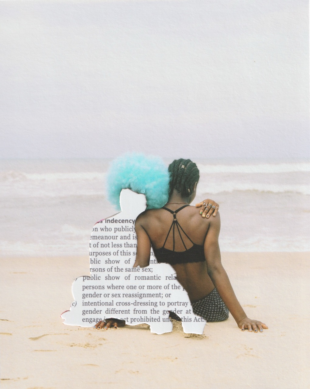 Si les thèmes sous-jacents restent inchangés, l’exploration de l’identité, la survie et l’amour, ce projet a désormais pris une nouvelle forme. Un second chapitre dans cette histoire en mutation. Des portraits qui devaient à l’origine donner à voir le courage et la force de la communité, ces visages et les personnes derrière eux sont désormais devenus des sortes de figures fantomatiques, cachées derrière une loi qui nie et criminalise leur existence de Ghanéens, d’Africains et d’êtres humains (les titres des photos ont également été modifiés, passant du nom du modèle à un « numéro de clause » contenu dans la loi pour cacher leur identité). Il en va de ma responsabilité de respecter leur souhait d’anonymat tout en conservant leur présence et leur impact aussi vibrantes que possible. Le développement de cette série au fil du temps révèle la réalité vécue de la communauté LGBTQ+ ; la répression de leurs rêves, leurs désirs et de leurs futurs.