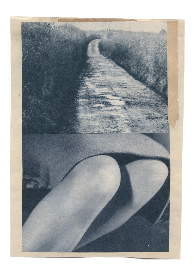Les travaux que je propose ici pour le prix Virginia sont un condensé minutieux d’une pratique pourtant spontanée. J’ai tenté justement d’associer les formes, les lignes et parfois les couleurs de chacun de mes collages pour qu’ils puissent, malgré leur singularité, exister ensemble et se répondre. J’aime me décrire comme une photographe dépourvue d’appareil, offrant une deuxième lecture à des images existantes. Mes sources sont ces photographies oubliées que je recycle et relie entre elles. Elles retrouvent par l’action du collage, similaire à la technique du montage, toute leur vibrance passée.